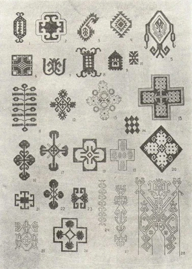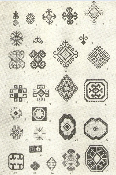 На основании данных о смысловом значении узоров, полученных от ковровщиц, мы имеем возможность раскрыть содержание некоторых орнаментальных мотивов. Но следует отметить, что мастерицы сообщали иногда совершенно разноречивые сведения. Некоторые одинаковые узоры интерпретировались ими по-разному. В дальнейшем изложении на это указывается.