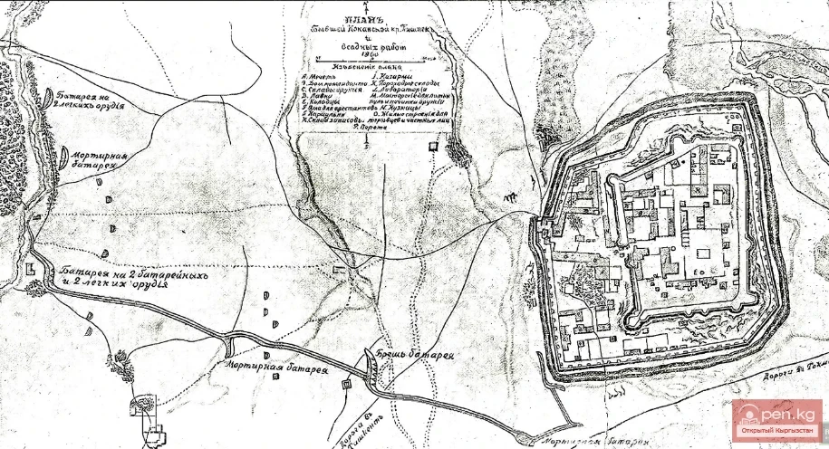 Вашему Высокопревосходительству известно, что страна в верховьях Чу занята целым рядом кокандских укреплений, из которых важнейшее есть Пишпек и которыя все лежат у предгорий снежного хребта Киргиз ныне - Алатау, запирая входы в его важнейшие поперечныя долины, где кочуют дикокаменные. Устройство этих укреплений при всех его азиатских несовершенствах таково, что действия против них требуют употребления некоторых средств европейской осадной войны, а по составу своих гарнизонов крепостцы могут оказать большее, или меньшее сопротивление даже и превосходным числом и устройством неприятелю.