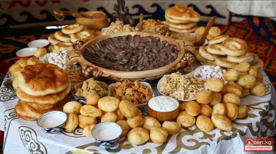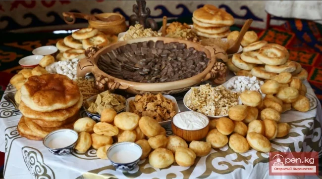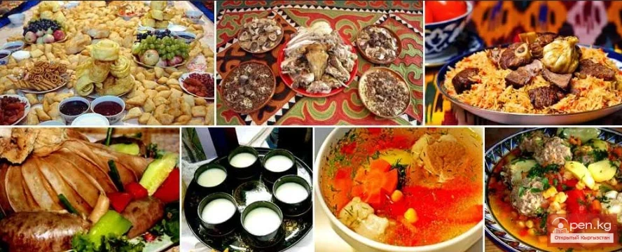 Но всё же традиционная кухня кыргызов — это кухня кочевого народа, обусловленная в первую очередь сытностью, максимальной полезностью и сбалансированностью, насколько это возможно, в любой сезон года, простотой приготовления. Не менее важным было и то, что традиционное сырьё, основу для приготовления еды составляли продукты, находящиеся всегда под рукой, которые не являлись редкостью, были в каждой юрте – кочевники не могли себе позволить никаких излишков.