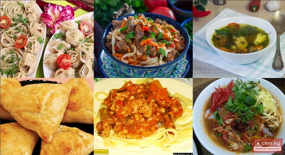 Для современной кыргызской кухни характерны разнообразные мясные, молочные и мучные блюда. Мясные блюда готовят из конины, баранины, говядины, птицы. Из конины, как и прежде, готовят ритуальные блюда. Наиболее распространенные способы тепловой обработки мясных продуков - варка, припускание, тушение, жаренье. Для семейных и общественных торжеств по-прежнему готовят старинное кушанье кочевников - бешбармак - мелко нарезанное мясо молодого барашка, политое бульоном и смешанное с отваренной в бульоне мелко нарезанной домашней лапшой. Отдельно стоит колбаса из конского мяса, с жиром - чучук и ассорти мясное (отварная конина, карын, карта).