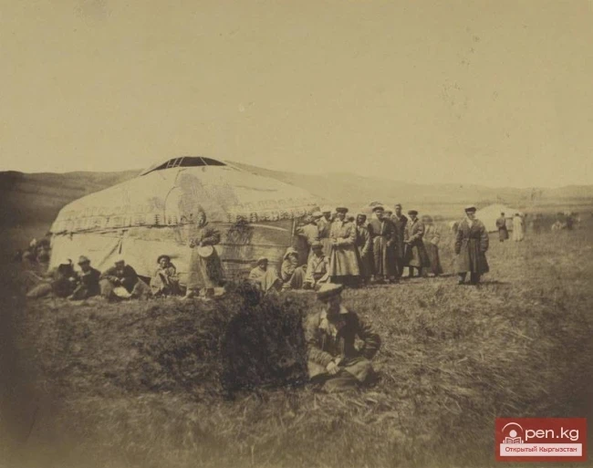 Имеются достоверные сведения о том, что в XIX в. наряду с малой семьей у киргизов еще продолжало существовать значительное количество неразделенных больших семей, внешне обладавших многими признаками патриархальных семейных общин, процесс распада которых начался уже давно. Они состояли из родственников трех поколений и более, живших общим домохозяйством; количество членов в таких семьях доходило до нескольких десятков человек. Скот считался общесемейным достоянием, запасы пищи, так же как и питание, были общими.