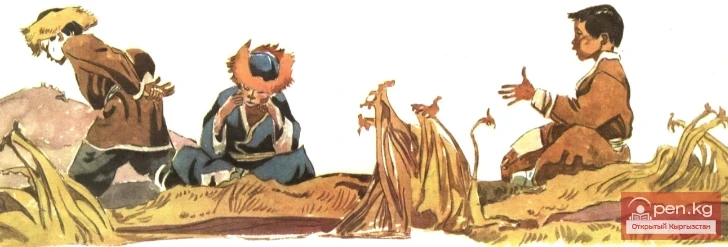 — Лучше и не спрашивай, — отвечал чабан. — Ты видишь перед собой аил Кёчпесбая. Он никогда в жизни не кочевал, но несколько лет назад его скот поел всю траву на пастбище и начал голодать. Пришлось Кёчпесбаю откочевать с тех мест. И был у него единственный сын. В дороге мальчик вспомнил, что забыл на старой стоянке альчик, и вернулся за ним, С тех пор Шукурбек исчез, и Кёчпесбай думает, что он погиб. И как раз сегодня Кёчпесбай справляет по сыну поминки.