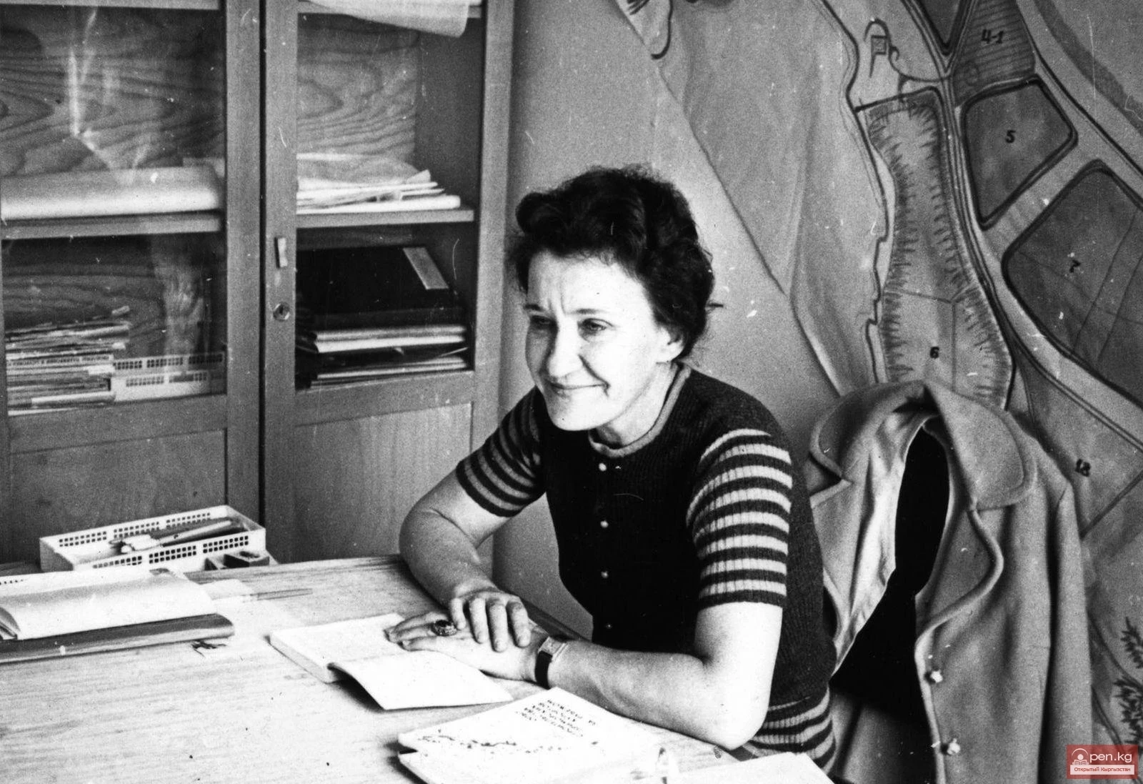 С 1958 года по настоящее время работает в ГПИ «Киргизгипрострой» в мастерской градоистроительства главным архитектором проектов. За период более 25-летней работы ею создано свыше 60 работ — это генеральные планы городов и поселков городского типа, курортов и курортных зон; проекты планировки и застройки парков, санаториев, пионерских лагерей; проекты детальной планировки центров и жилых районов. Обладая огромым профессиональным багажом, она умело, на протяжении четверти века, решает сложнейшие градостроительные задачи. Намечаемые ею контуры будущих городов превращаются в реальность. Награждена Грамотой Верховного Совета Киргизской ССР.