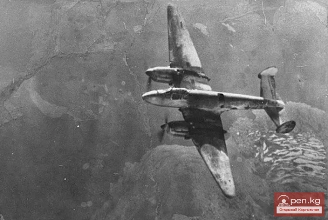 Но «петляковы» упорно шли к цели. Она совсем близко. Один за другим начали пики-ровать на станцию наши бомбардировщики. Вошел в пике и самолет Мирошниченко. На несколько секунд железнодорожная станция и стоявшие на путях эшелоны покрылись сплошными взрывами. Внезапно справа на бомбардировщик устремился «мессершмитт». Радист- стрелок поймал его в прицел и нажал гашетку бортового пулемета: попал! «Мессер» задымил и кувыркнулся вниз. Но радоваться было еще рано. Теперь уже слева налетел фашистский истребитель и прошил бомбовоз пулеметной очередью. Острая боль пронзила ногу Николая.