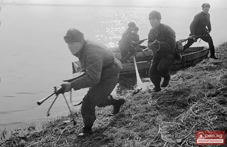 На том берегу внимательно следили за каждым отчаянным шагом десантника Асанбека Оторбаева из 3-го стрелкового батальона.