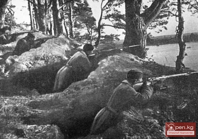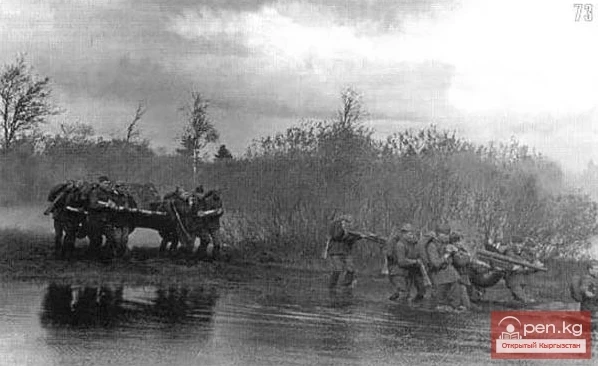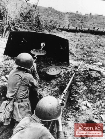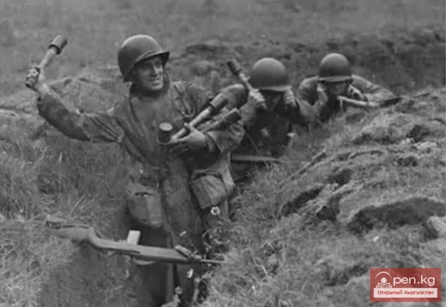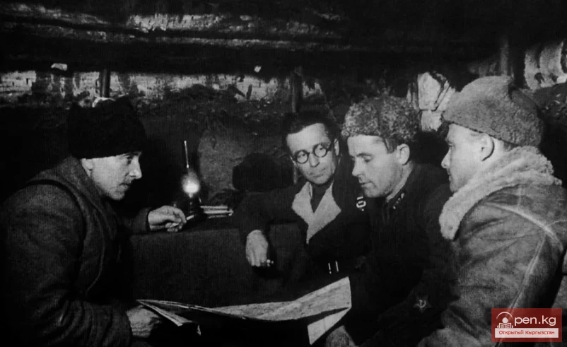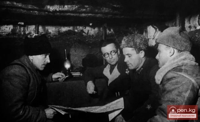 После госпиталя — курсы ротных политруков, направление в эвакобатальон. Попросился на передовую, и из резерва фронта был переведен сюда. Где-то в киргизском селе осталась жена с четырьмя детьми.