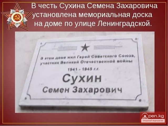 После войны он вернулся домой, в Киргизию. В семье Сухиных появился второй сын — Александр, ныне сотрудник Томского НИИ автоматики и электромеханики. Там, в Томске, Сухин-старший еще успел понянчить внука, в честь него тоже названного Семеном. Там же Семен Захарович и похоронен в 1971 году.