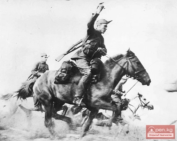 «Притомились ребята, устали. Ведь который день в боях, да и каких боях! — тепло, по-отечески подумал лейтенант Тихонов о бойцах своего эскадрона, окидывая взглядом изнуренные постоянным недосыпанием лица. — Хлопцы у меня — кремень! Знаю, будет сейчас приказ — они не колеблясь ринутся под пули и будут драться самоотверженно, умело, не щадя себя... Устали, конечно, но сейчас нам отдыхать недосуг. Надо наступать, не давать врагу передышки, только вперед, вперед...»