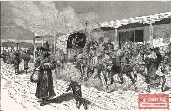 В декабре выпал первый снег, замерзли пруды, а в арыки перестали подавать воду. Привыкшему к сибирским морозам Валиханову зима казалась нехолодной -температура держалась около нуля и только раза два за всю зиму опускалась значительно ниже —до 8—16° мороза. Но сами кашгарцы придерживались иного мнения о своей зиме — особенно уличные певцы, нищие, полоумные наркоманы «бэнги», отравленные гашишом и опиумом,— все те, кто не имел средств для покупки очень дорогих дров, кто кутал костлявые немытые тела в рваные, видавшие виды халаты или старые, выброшенные хозяевами китайские епанчи... После таких морозных ночей всегда вывозятся за город трупы отверженных, не сумевших найти теплое убежище, а песни слепцов звучат особенно грустно и рассказывают они о тяжелой жизни в Кашгаре, где труднее сохранить голову, чем прокормить лошадь, о той стороне кашгарского быта, которую так добросовестно избегают затрагивать веселые легенды о веселом городе...