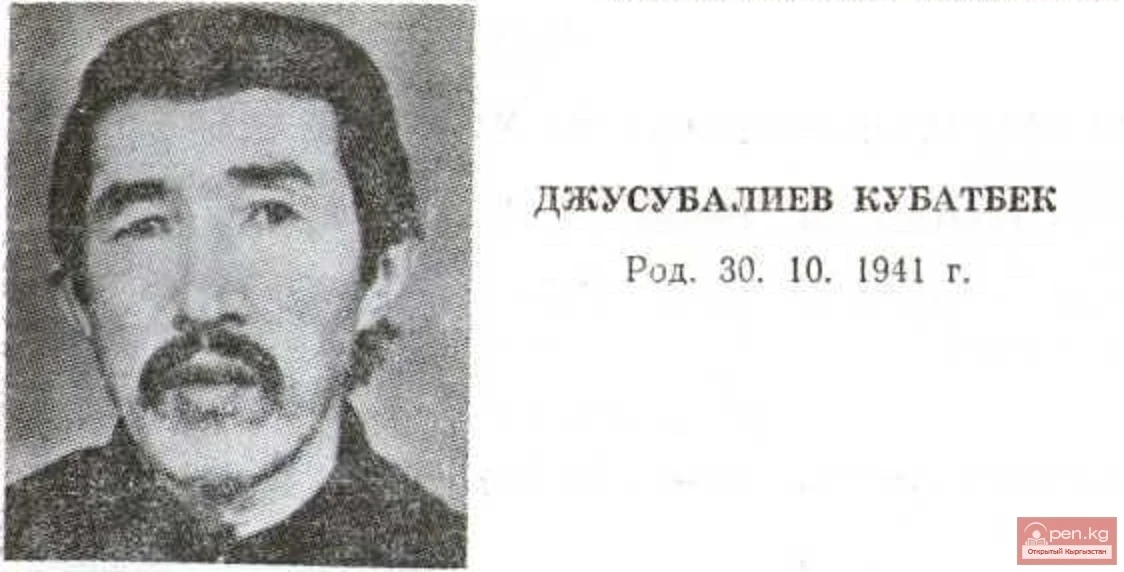Жусубалиев Кубат Кинодраматург. Родился 30 октября 1941 года в селе Кердегей Алайского района...