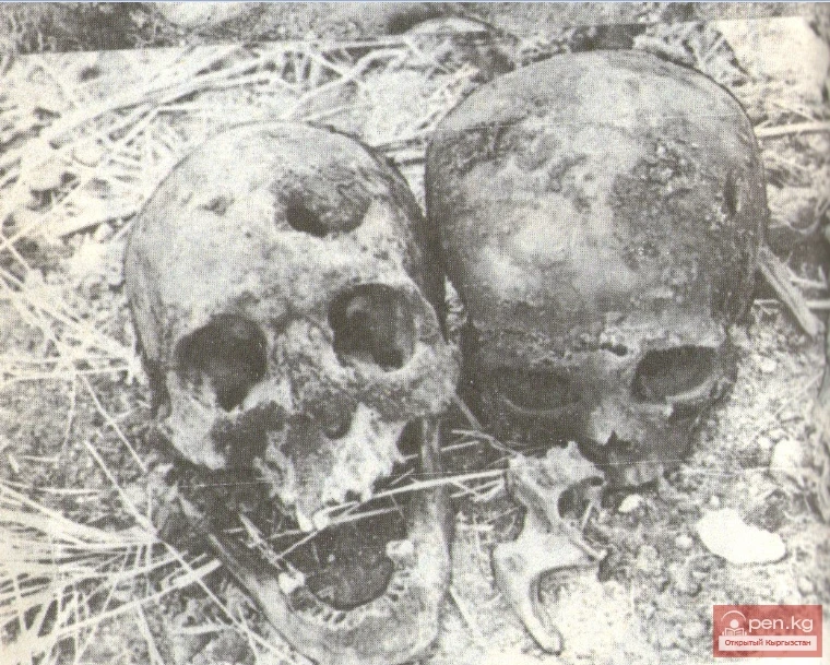 ... На столах, на полках в трех комнатках расставлены человеческие черепа. То, что они из чон-ташского "захоронения", видно сразу по небольшим, как правило, круглым отверстиям разной величины.