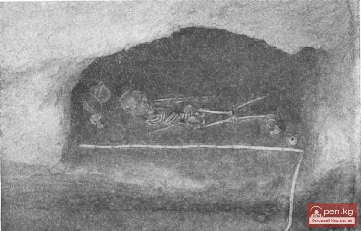 Заметим, что не все признаки имеют равное значение, например, характер заклада входа. Так, тип IV с восточной ориентацией костяка можно рассматривать как вариант типа II, поскольку они отличаются лишь по закладу входа. То же надо оказать о типах VII к VI. Тип V обозначен неверно, так как в могильнике Калантар-хона дромосы вытянуты по линии С-Ю и СЗ-ЮВ с камерой в северном конце (Литвинский, 1972, с,32). Следовательно, дромос расположен диагонально и расположение катакомбы предопределяет ориентировку погребенного. Количество типов, следовательно, надо сократить.