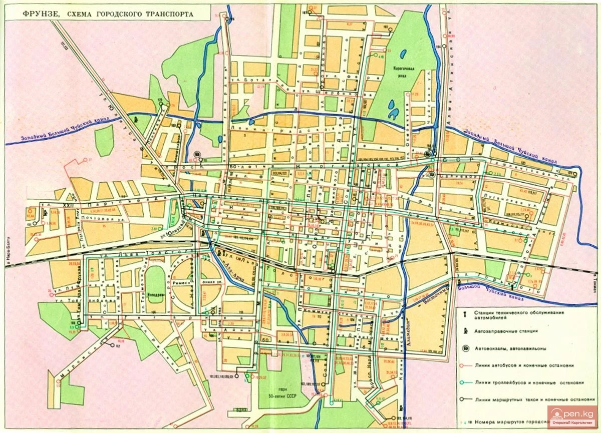 Особое место в развитии градостроительства Киргизии занимает генеральный план города Фрунзе, который был разработан в 1970 году ЦНИИП Градостроительства (Москва).