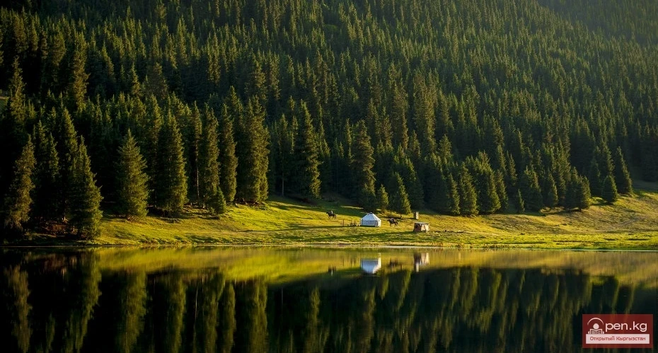Леса — одно из важнейших природных богатств. В Киргизии они занимают 705 тыс. гектаров. Одним из ценнейших лесных массивов республики является единственный в мире массив уникальных реликтовых орехово-плодовых лесов, сосредоточенный на юге Киргизии. Этот редкий по красоте уголок нашего горного края представляет собой природный ботанический сад, где произрастает около 130 видов деревьев и кустарников, среди которых грецкий орех, фисташка, миндаль, груша, дикая слива, барбарис.