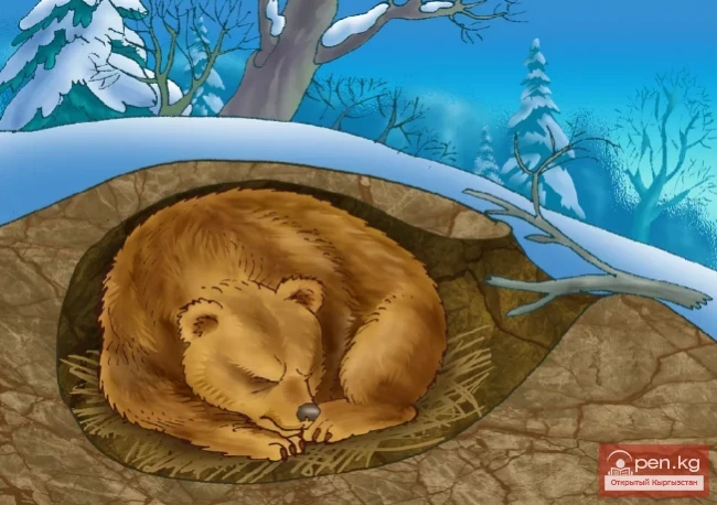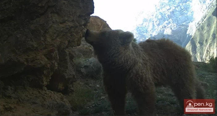 Свои берлоги медведи устраивают чаще всего в расщелинах скал. Такую берлогу удалось обнаружить в верхнем поясе елового леса, у основания скалы, на высоте 2800 м над ур. м., в урочище Алтын-Арашан (Терскей Ала-Тоо).