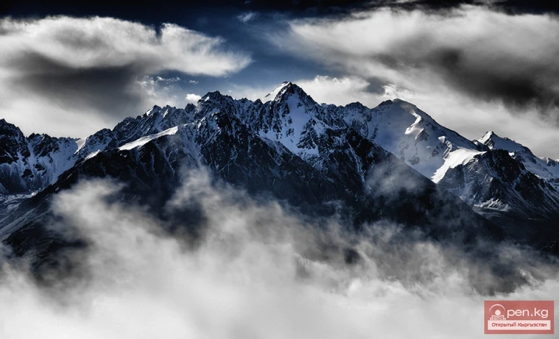 Сарыджаз Могучим заснеженным барьером высится горный хребет Сарыджаз в Центральном Тянь-Шане, на...