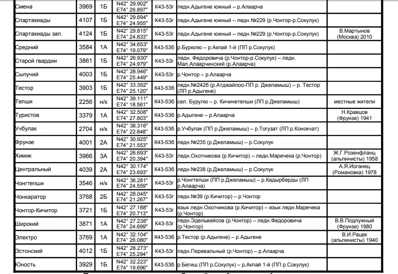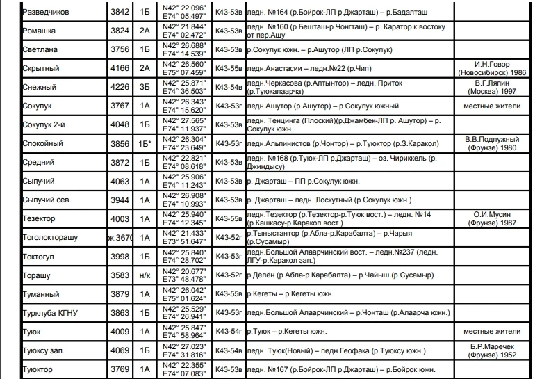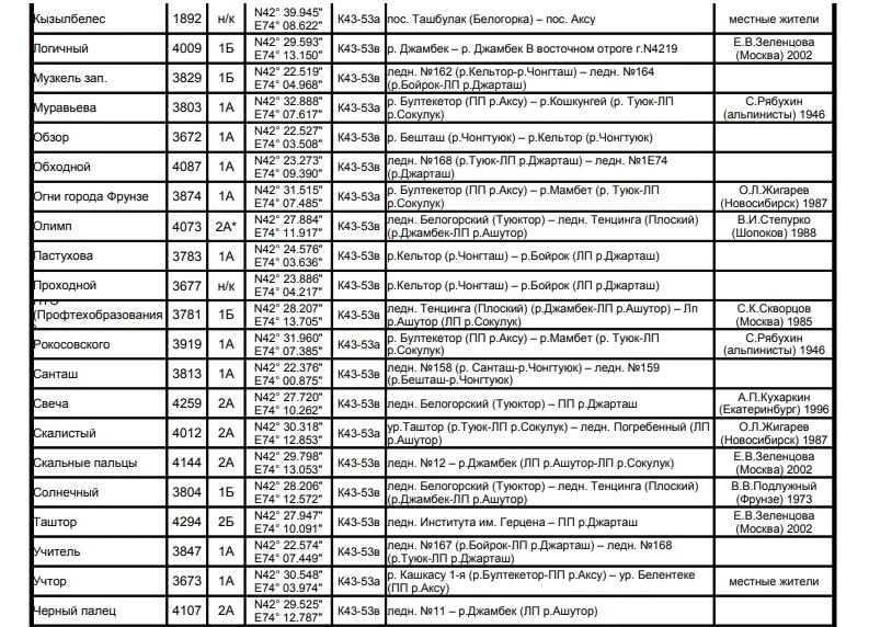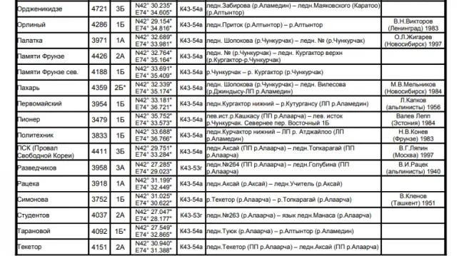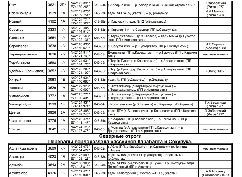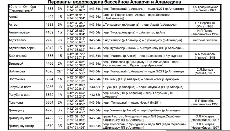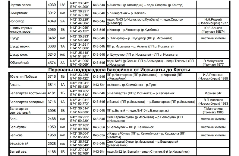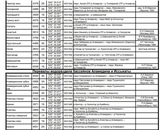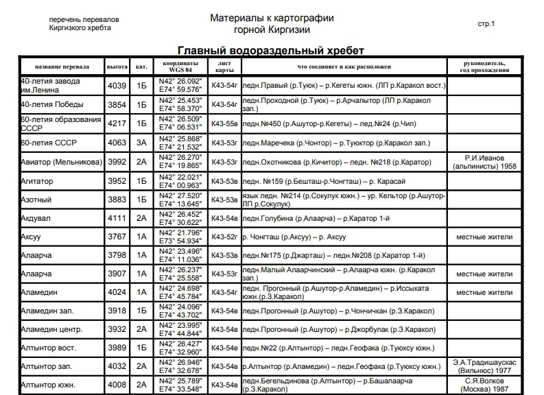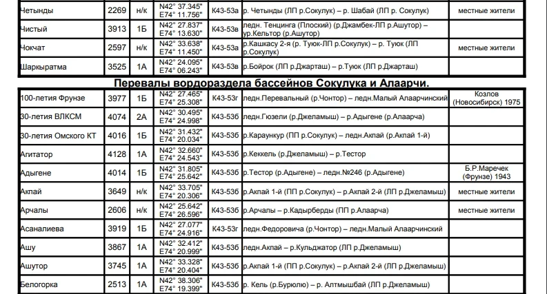 Основные перевалы в Чуйской долине
