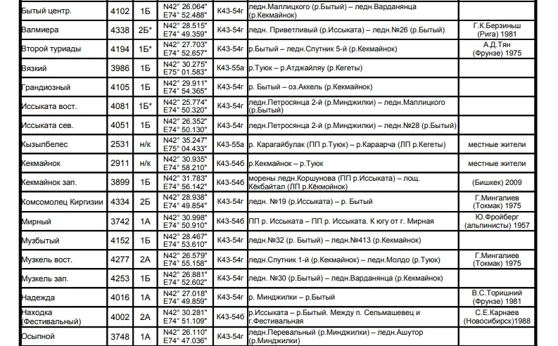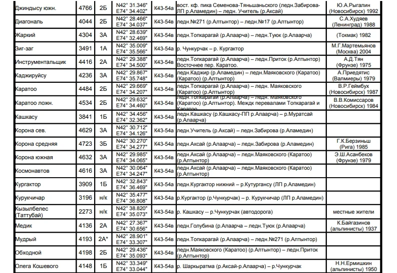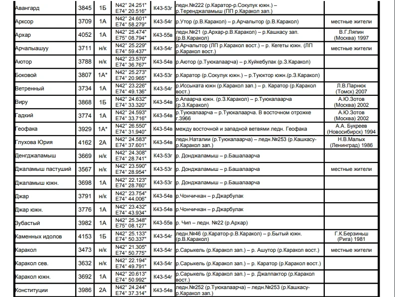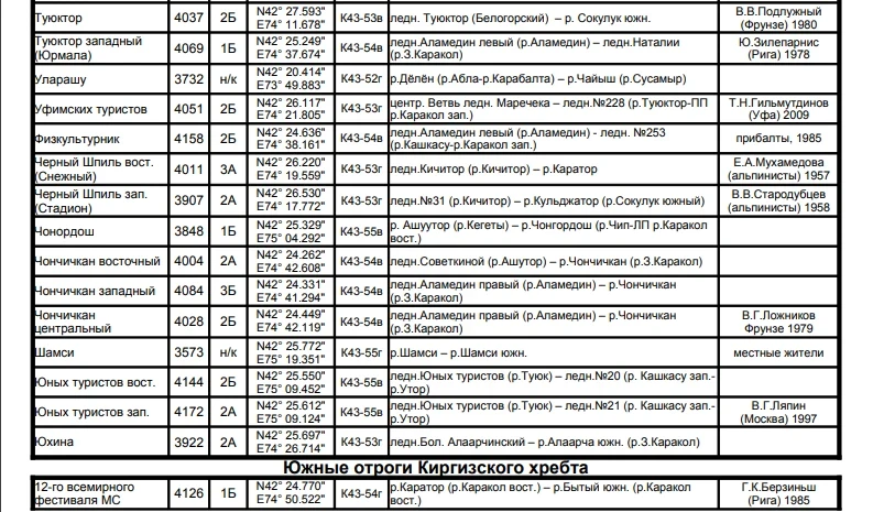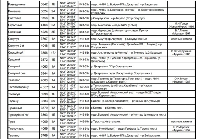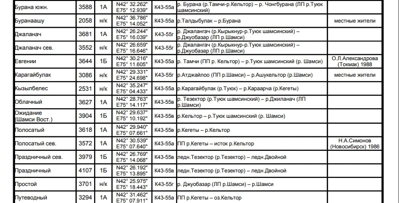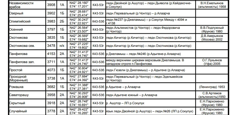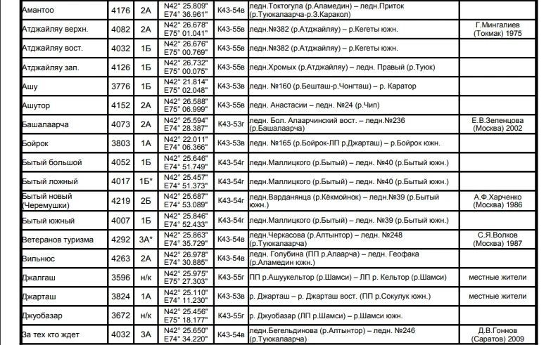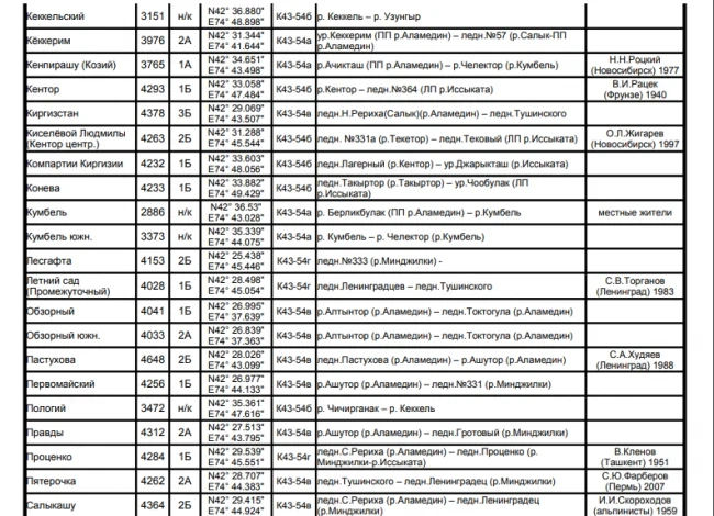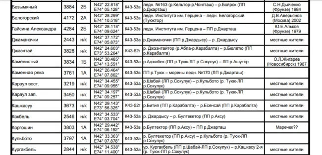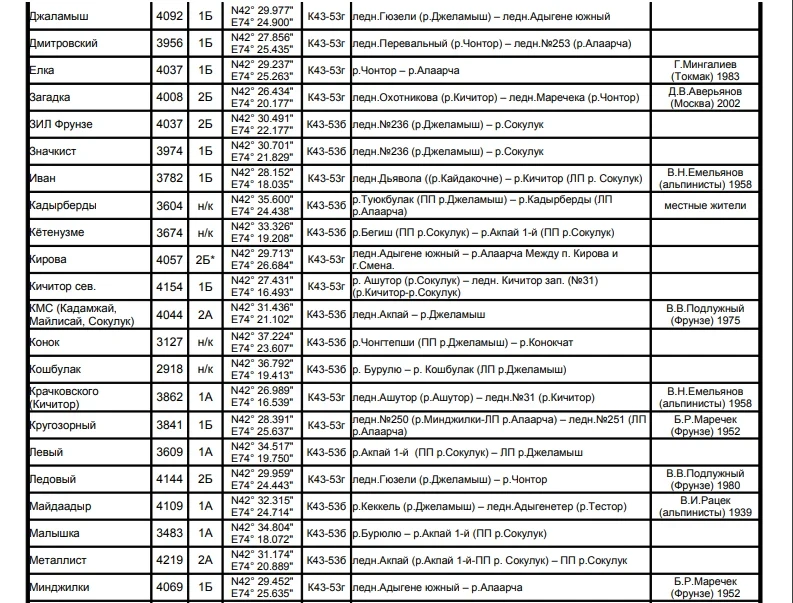 Основные перевалы в Чуйской долине