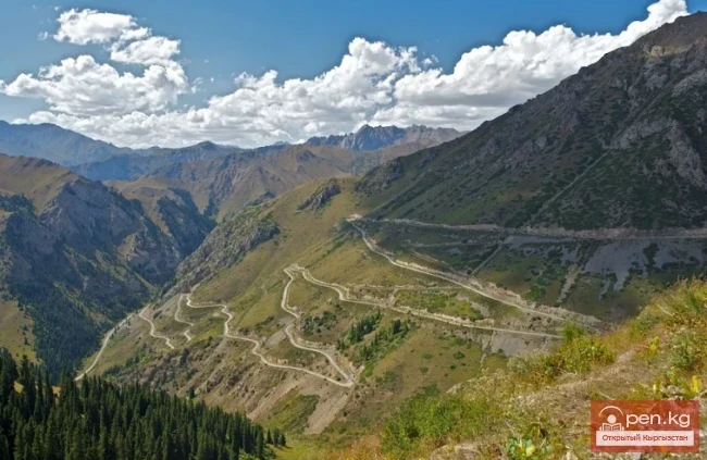 Перевал Кырк-кыз (высота 3223) расположен в Нарынской области и простирается от Кызыл Ой до Токтогула.
