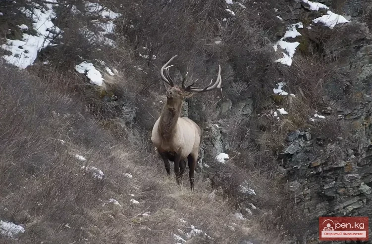 Вслед за козлами передвигаются и снежные барсы — обитатели горных вершин. Численность этих животных в Киргизии очень незначительна. Охота на них запрещена.