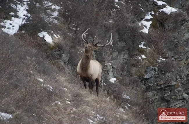 Почва в лесу и остепненные склоны местами изрыты кабанами, которые встречаются в глухих и влажных отщелках, поросших густыми кустарниками. В еловых лесах можно встретить редких в Киргизии маралов. Участки еловых лесов и кустарников, перемежающиеся полянами и прогалинами,— излюбленные места обитания косули, которая в заповедных участках довольно многочисленна. И косули, и маралы нередко становятся добычей рыси, подстерегающей их на водопоях, тропах и переходах. На опушках ельников можно вспугнуть выводок тяньшанских
