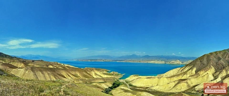 Кетменьтебинская котловина по площади меньше Таласской. Со всех сторон она окружена высокими хребтами: на севере — Таласским и Суусамырским, на востоке — Кекирим-Тоо, на юге и юго-западе — Атойнокским и Ферганским. В котловине преобладают полупустыни и степи. В адырной полосе, окружающей водохранилище, располагаются степи с чием, прангосом, вишней и многими другими видами кустарников. От водохранилища и многоводной реки Нарын поверхность долины довольно круто поднимается к склонам хребтов. Все ровные участки остались на дне рукотворного моря. Названия наиболее значительных участков долины носят имя великого киргизского акына — Токтогула Сатылганова, воспевшего в своих песнях дорогие памяти места. Любой киргиз покажет гору Шамшикал, ущелье Токтобек-Сай, горы Токтобек-Тоо, Кетмень-Тебе. О горе Шамшикал, находящейся рядом с селом Торкент, Т. Сатылганов писал: