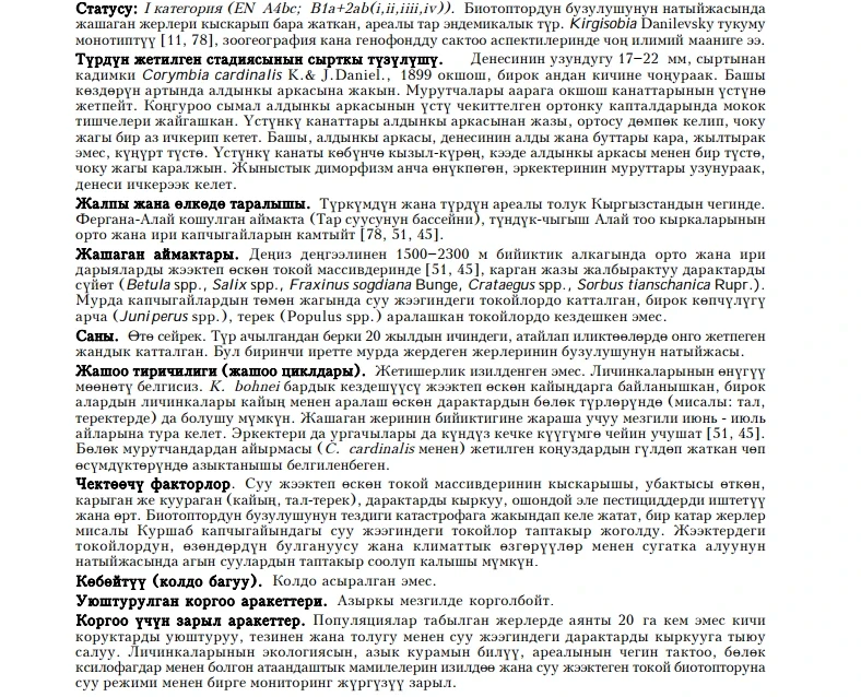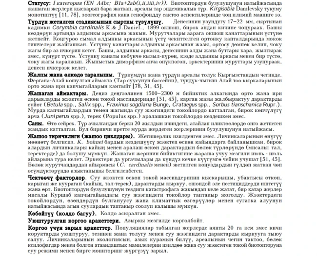 Чуйская остролучка Статус: 2 [CR: C]. Возможно, уже исчезнувший на территории Кыргызстана...