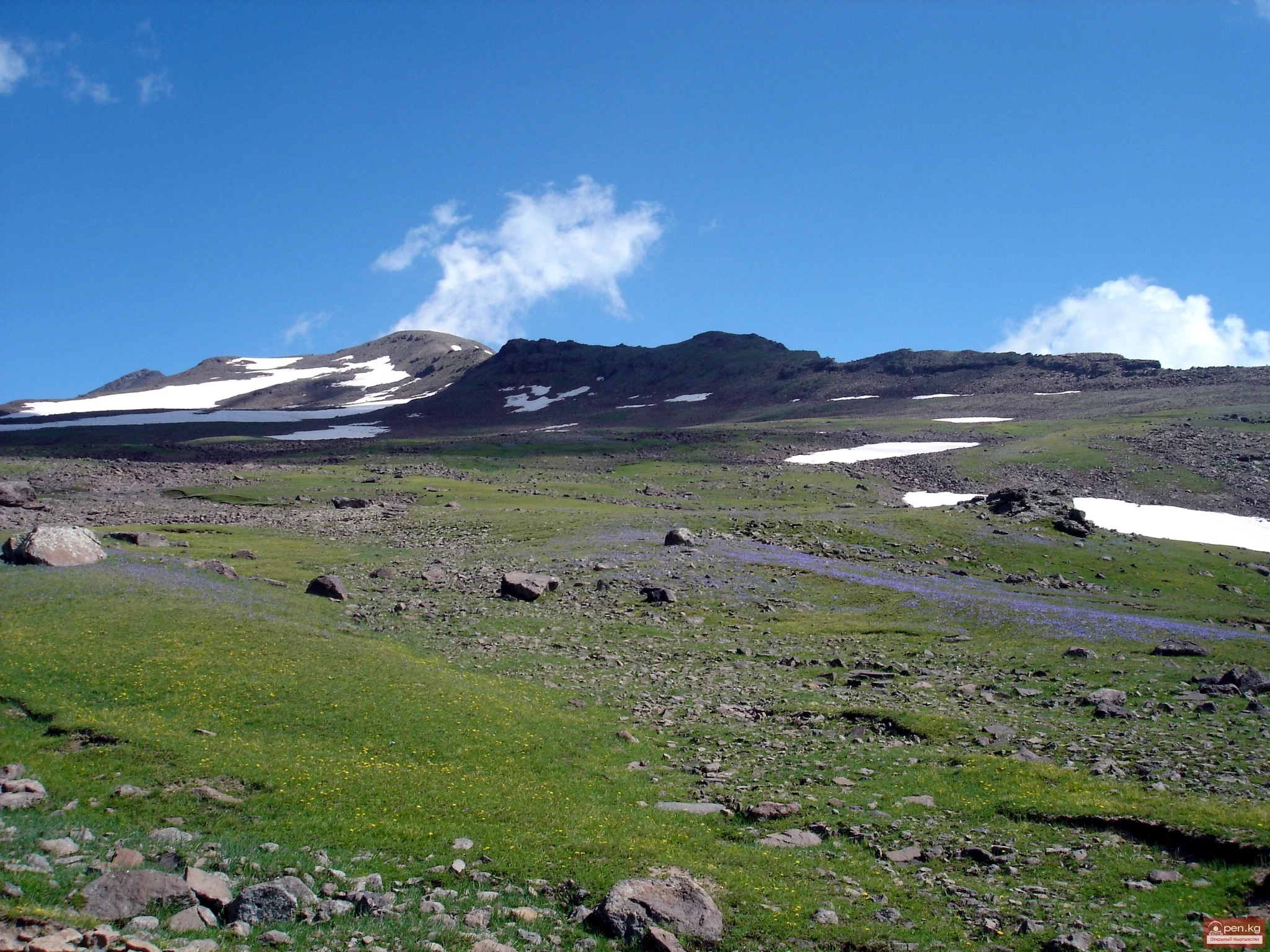 Туркестанский хребет начинается от перевала Матча и тянется на запад строго в широтном направлении до города Жизак. Общая длина около 300 км, из них половина на территории нашей республики (150 км). Весь юж. склон его на территории Таджикистана. Средняя высота Туркестанского хребта 4300— 4400 м , самая высокая точка вершина Аскалуу (5621 м ), в бассейне реки Сох вблизи перевала Матча. Туркестанский хребет является орографическим продолжением Алайского хребта, имеет асимметричное строение, крутой и короткий юж., пологий и широкий сев. склоны.