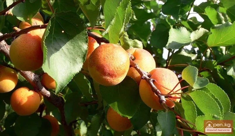 Абрикос обыкновенный или урюк, из семейства Розоцветных. Дерево до 5 м высоты с яйцевидными листьями и розовыми или белыми цветками. Цветет в марте и апреле. Разводится в Ферганской, Чуйской, Таласской долинах и котловине озера Иссык-Куль. Ранневесенний медонос. Медопродуктивность —30—35 кг с га.