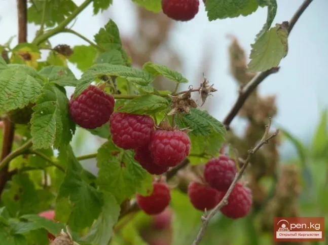 Малина обыкновенная, из семейства Розоцветных. Кустарник 80—100 см высоты с непарноперистыми сложными листьями, цветет в конце мая, в июне. Как культура разводится в зоне земледелия. Естественные заросли встречаются по берегам рек, среди лесов и кустарников в Фергане, Чуйской и Таласской долине, котловине озера Иссык- Куль. Хороший медонос. Медопродуктивность — до 50—100 кг с га.