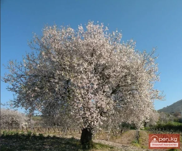 Миндаль обыкновенный, из семейства Розоцветных. Дерево 4—7 м высоты с узко-эллиптическими листьями и розовыми цветками. Цветет в конце марта, в апреле. Дает нектар и пыльцу. Разводится в Ферганской и Чуйской долинах. Ранневесенний медонос. Медопродуктивность — до 20—25 кг с га.