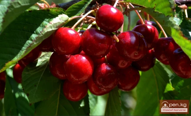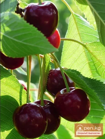 Вишня обыкновенная, из семейства Розоцветных. Дерево с широко эллиптическими листьями и с белыми цветками. Цветет в апреле и мае. Дает нектар и пыльцу. Распространена в Чуйской и Таласской долинах, в Фергане, Иссык-Кульской котловине. Хороший медонос. Медопродуктивность —30—35 кг с га.