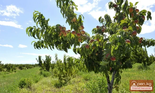 Персик обыкновенный, по-киргизски шабдалы, из семейства Розоцветных. Дерево до 3 м высоты с удлиненно-ланцетными листьями и розовыми цветками. Цветет в марте и апреле. Дает нектар и пыльцу. Растет в Чуйской долине, Таласе, Фергане. Медопродуктивность — до 30 кг с га.