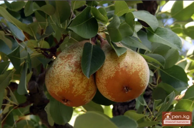 Груша обыкновенная, по-киргизски алмурут, из семейства Розоцветных. Дерево с овальными листьями. Цветет в апреле и мае. Дает нектар и пыльцу. Разводится в Чуйской долине, котловине озера Иссык-Куль, в Таласе и Фергане. Хороший медонос. Медопродуктивность — до 30 кг с га.