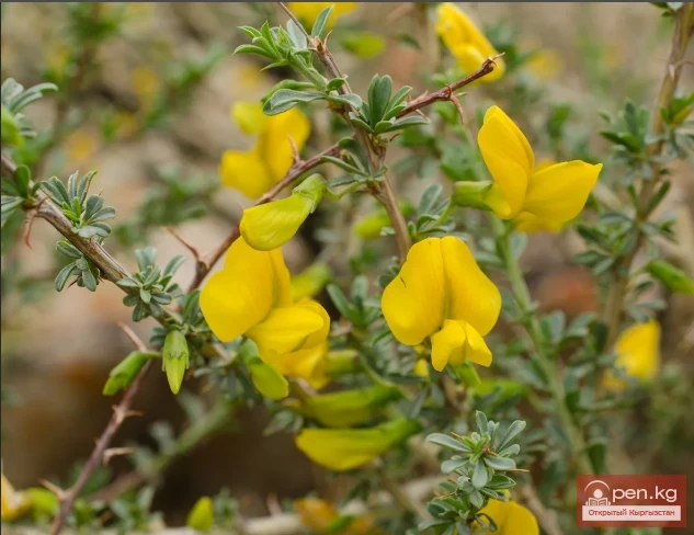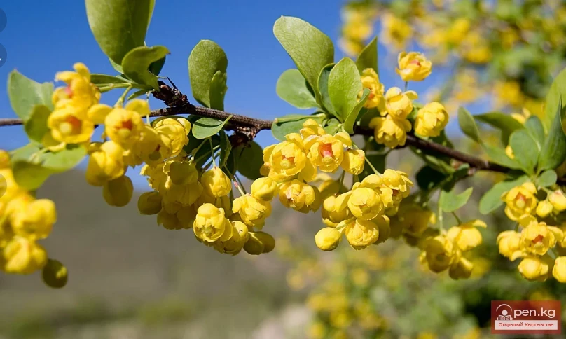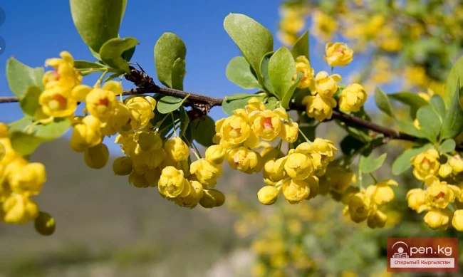 Барбарис разноножковый, из семейства Барбарисовых. Кустарник до 2 м высотой. Цветет в мае и июне. Дает нектар и пыльцу. Растет по долинам рек и склонам гор в поясе лесов и высокотравных лугов во всех районах Киргизии.