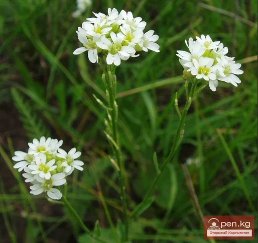 Икотник серый, из семейства Капустных. Сероватое растение с белыми цветками.