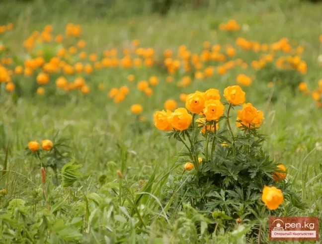 Купальница алтайская, из семейства Лютиковых. Многолетнее растение до 60 см высоты с огненно-желтыми цветками. Цветет в мае, июне и июле. Дает много нектара. Растет на субальпийских и альпийских лугах и в лесах во всех районах Киргизии. Охотно посещается пчелами.