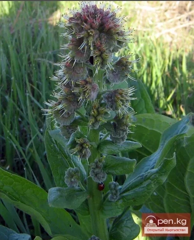 Трубкоцветник завитковый, из семейства Бурачниковых. Растет на лугах и лугостепях, в лесах и кустарниках почти по всей Киргизии в нижнем и среднем поясе гор.