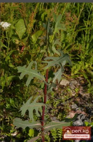 Латук дикий, или обыкновенный. Двулетнее растение 60—130 см высоты с прямым беловатым стеблем. Листья сизые со стрело¬видным основанием, стеблеобъемлющие. Цветки желтые. Цветет в июле — августе, плодоносит в августе — сентябре — октябре. Растет в посевах, на залежах, в предгорьях, вдоль арыков, по поймам рек, среди кустарников, на склонах до 1700 м над ур. моря. Встречается в котловине оз. Иссык-Куль, во Внутреннем Тянь-Шане, в Чуйской долине, в Таласском, Ферганском и Алайском хребтах (по северным предгорьям). В млечном соке содержит много смол.