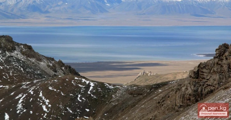 Мимо озера пролегает трасса в Китай в г. Кажгар.