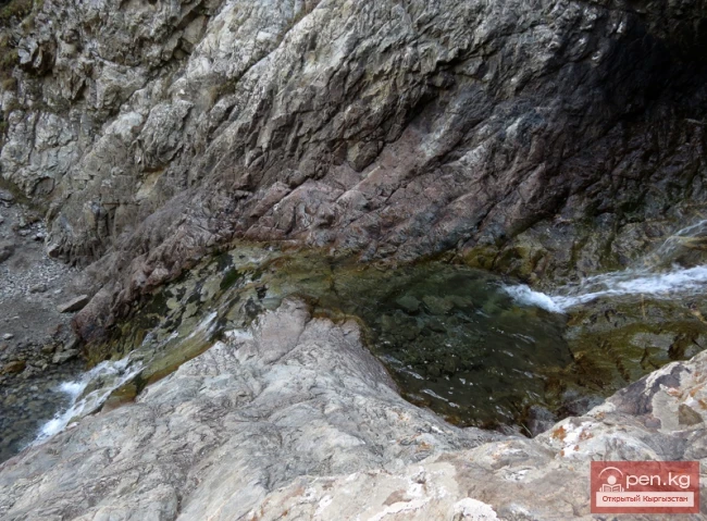 "Чаша Манаса" согласно легенде, образовался после того, как Манас зачерпнул воды рукой, и от этого в скале осталась чаша.