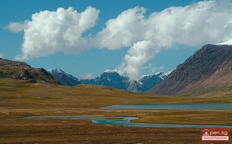 Сырты - это холодная полупустынная равнина, сформировавшаяся на высотах Тянь-Шаня от 3000 до 3600 метров, характерными объектами которой являются пологие холмы, небольшие озера и болотца, россыпи камней разной величины, покрытых рябью небольших пятен подушечниковой растительности. Реки текут по сыртам широко и величаво. Озера с пологими берегами кажутся большими «стеклами» лежащими на земле. Чернеющие всюду морены и громадные валуны, покрытые разноцветными лишайниками, напоминают законсервированный ландшафт ледникового периода земли.