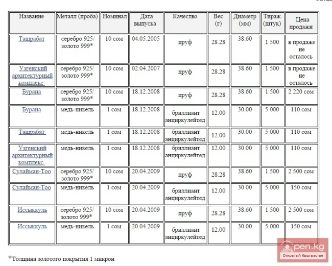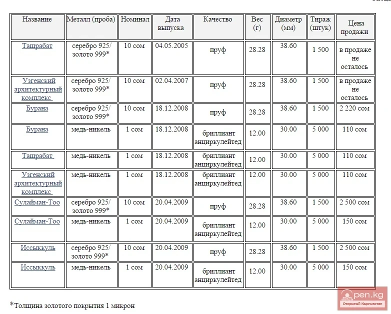 Монеты имеют статус официального платежного средства на территории Кыргызской Республики. Во избежание повреждений монеты помещены в акриловые капсулы. Каждая серебряная монета помещена в отдельную шкатулку с приложенным сертификатом.