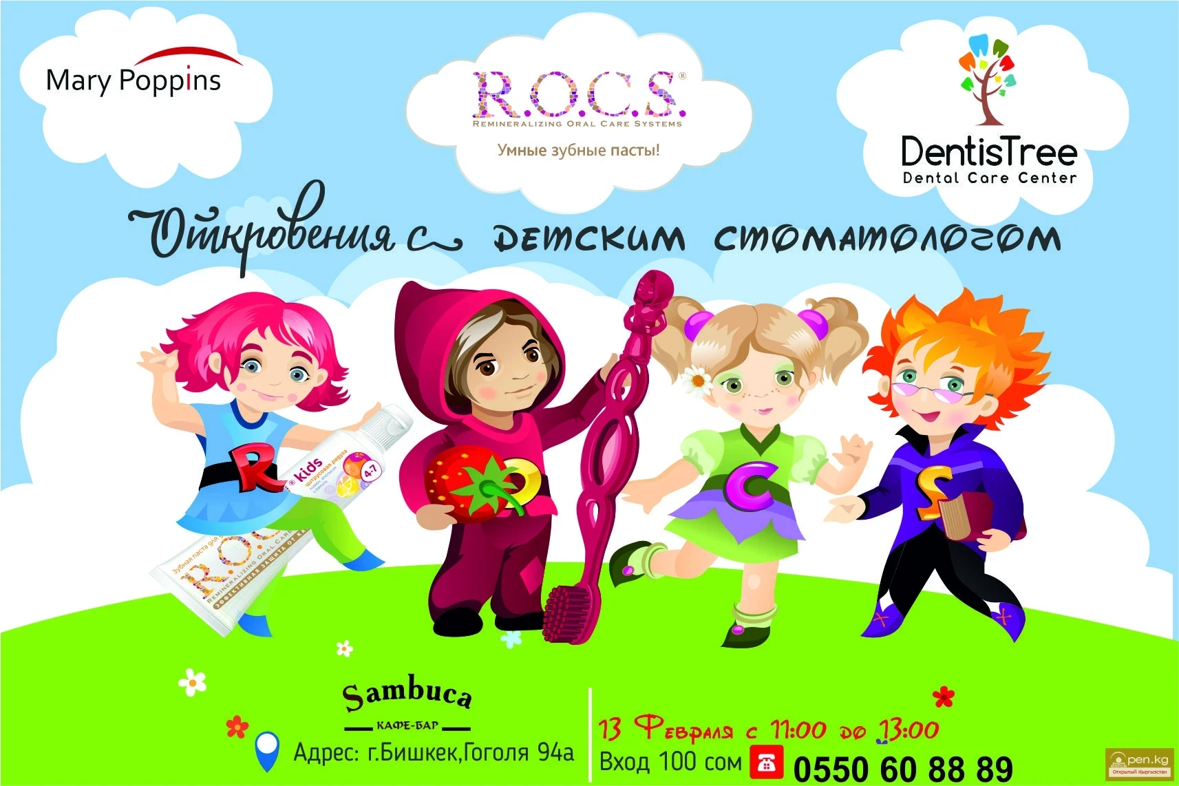 Вход взрослым 100 сом, детям +50 сом.