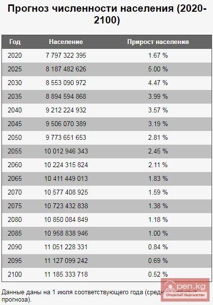 Прогноз численности населения Кыргызстана на (2020-2100) года