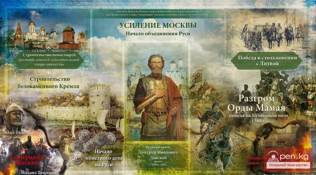 С конца XIII века среди русских земель постепенно формируется новые центры — Московское и Литовское княжества. Московские князья сумели победить в борьбе за владимирское великое княжение, ярлык на которое давали ханы Золотой Орды. Владимирский великий князь выступал сборщиком дани и верховным правителем в пределах Северо-Восточной Руси и Новгорода. Начиная с правления князя Дмитрия Донского, нанёсшего первые серьёзные поражения Золотой Орде, с 1363 года ярлык на Великое княжение всея Руси вручался только князьям московского дома.