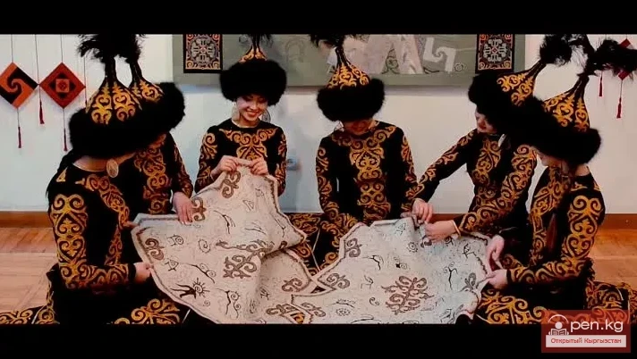 Before starting to learn a particular Kyrgyz dance, the leader of the dance group will, as always, introduce the future performers to the musical material, patterns and sketches presented in the recording, and the costumes.