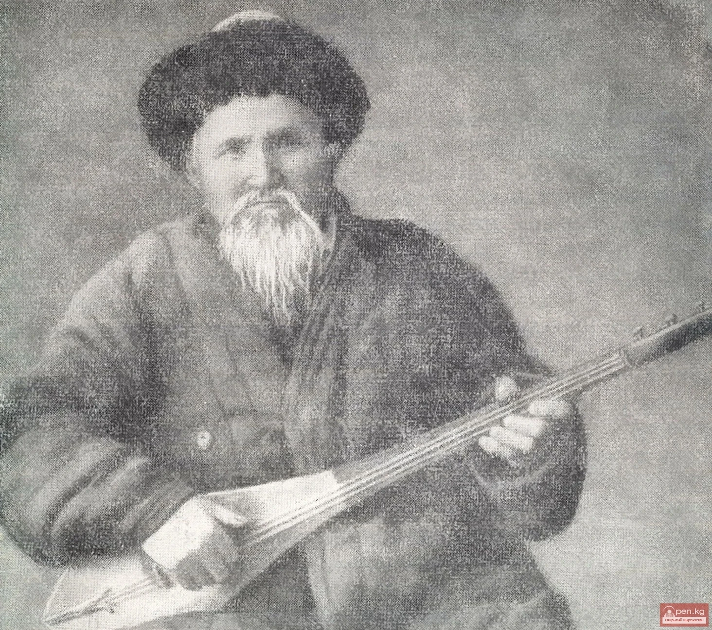 Toktogul Satylganov (1864—1933) is the most outstanding of the Kyrgyz akyns of the late 19th and early 20th centuries, the founder of Soviet Kyrgyz literature, and the teacher of an entire generation of Soviet akyns. The pre-revolutionary freedom-loving poems of the akyn aroused the wrath of the bai and mullahs, who cruelly persecuted the poet. On a false denunciation in 1898, the court sentenced the akyn to death, which was commuted to hard labor in Siberia. In 1903, with the help of Russian friends, Toktogul escaped from exile and, with great difficulty, made his way back to his homeland.