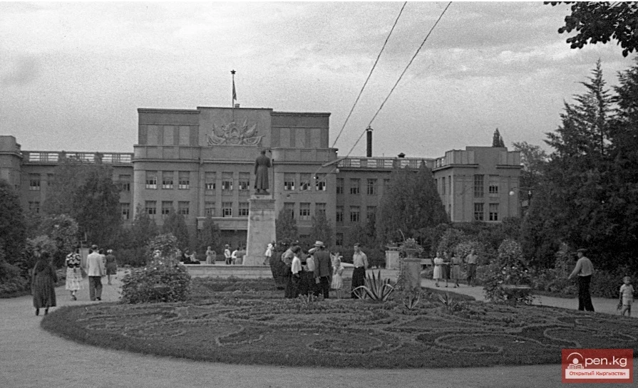 It was evening. The hot, oppressive day was fading away. Pink reflections of the setting sun gently played on the gray peaks of the majestic Ala-Too mountain range. A barely noticeable fresh breeze was blowing from the mountains. You had just stepped out of the train from Moscow to Frunze and, after passing through the beautiful station building, found yourself in the square in front of the station. A green carpet of grass, decorative shrubs, flowerbeds of beautiful bright southern flowers, and ahead - the perspective of asphalt with the overhanging crowns of old willows, linden, and oak trees. In the distance, a neat row of pyramidal poplars stretches out. This is Frunze - the capital of the Kyrgyz Soviet Socialist Republic.