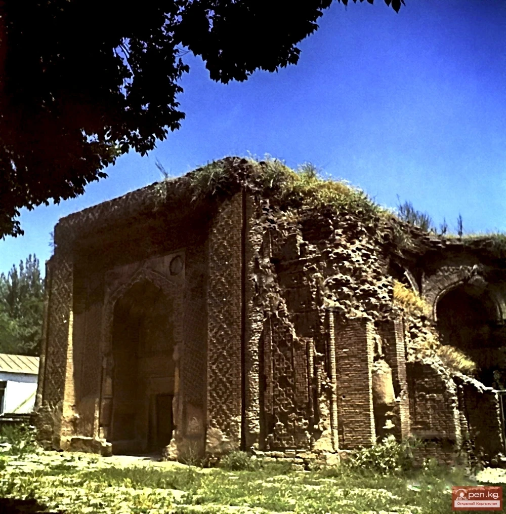 The medieval layout of the city has been preserved to this day in the winding streets and dead ends, in the densely built-up quarters with narrow courtyards. The center of the city remains the Uzgen Architectural Complex, built in the 11th-12th centuries. It includes a minaret and three mausoleums located in a row, tightly next to each other, built of fired brick with the use of ceramics, situated a hundred meters from it. The mausoleums are crowned with domes and decorated with portals, and their facades are richly ornamented with inscriptions and patterns, finely combining floral and geometric designs. The middle mausoleum has been preserved the least well — it is believed that it was built earlier than its neighbors for the burial of one of the first Karakhanids, Nasr-ibn-Ali.